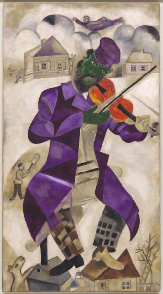 在相當長的時間里,畫家們覺得紫色是一種非常難于處理的顏色,小心翼翼地在作品中避開這個顏色。18世紀末的法國女畫家勒布倫是當時為數(shù)不多敢于在畫作中從容使用紫色的畫家。下圖是她的自畫像。直到印象派崛起后,紫色大面積地出現(xiàn)在油畫里。夏加爾則在印象派之后,更有想象力和創(chuàng)造性地發(fā)掘了紫色的美感。上圖為夏加爾作品《小提琴家》。