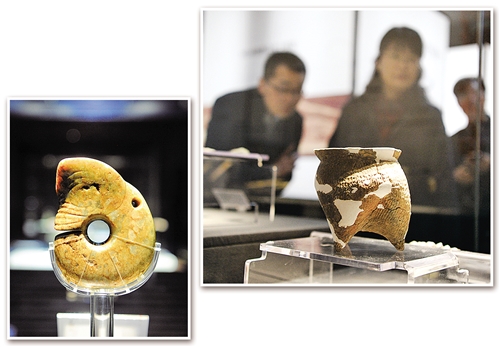 梁帶村芮國遺址博物館內(nèi)展出的玉豬龍。 新華社發(fā) 張博文攝