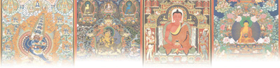 “唐卡”是音譯,即藏地卷軸佛畫,受宗教啟迪,為信仰服務(wù)的神本主義內(nèi)容是其自古至今的創(chuàng)作主題。若依其具體描繪的圖像內(nèi)容,又可分為五項:一是佛陀菩薩類;二是密宗本尊、護法、羅漢類;三是高僧上師造像類;四是曼陀羅、宇宙天體及藏醫(yī)藥類;五是記事及箴言書法類。若依唐卡制作的方法材料異同,唐卡又可大致分為“止唐”和“國唐”兩大類。