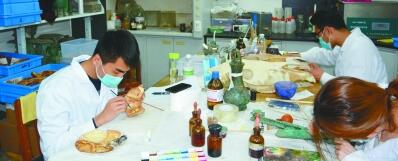 分清了馬骨,接下來他們就開始分析馬骨的保存情況。通過一系列分析他們得出:這些馬骨保存在弱堿性的土壤中,馬骨表面附著的石膏、方解石等來自土壤鈣積層,還有金含量較高的金箔。馬骨的抗裂、抗壓、抗折等機(jī)械性能大大降低,因此斷裂,甚至是殘缺。這也為此次修復(fù)找到了方向:對馬骨進(jìn)行加固,是修復(fù)的重要環(huán)節(jié)。