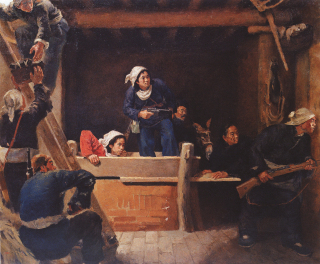 地道戰(zhàn)(布面油畫) 羅工柳 作