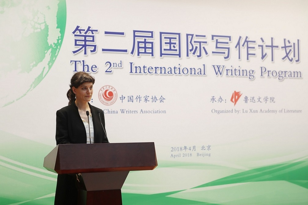 斯洛文尼亞詩(shī)人芭芭拉·保加可尼克在魯迅文學(xué)院第二屆國(guó)際寫(xiě)作交流計(jì)劃開(kāi)幕式上致辭