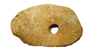 2015年7月7日,張福有與池南區(qū)區(qū)委書記曹樹清、科員于建一起,在區(qū)委所在地?fù)崴煽h漫江鎮(zhèn)漫江村進(jìn)行田野調(diào)查。于建看到一塊帶孔的石頭,拿給張福有看?!拔医舆^來一看,馬上看出這個(gè)孔肯定是人工磨出來的??椎闹苓吋s有1厘米向下磨了,凹了下去,而且兩面都有,這是典型的人為痕跡。可惜少了一個(gè)角,這個(gè)孔應(yīng)該能環(huán)上,缺的部分非常重要,必須馬上找到!”張福有對(duì)記者說,“于是,我們馬上開始尋找丟失的另一小半?!?/p>