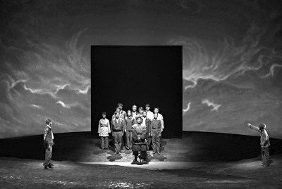 “我不是一個(gè)邊緣人,我在文學(xué)和審美上不喜歡邊緣的東西。亞里士多德的《詩(shī)學(xué)》僅有百余頁(yè),我已讀了三十年?!兑痪漤斠蝗f(wàn)句》的類型界定,從一開(kāi)始就非常明確:悲劇?!痹缭凇兑痪漤斠蝗f(wàn)句》公演前,牟森就這樣表白過(guò)自己的心跡了。
