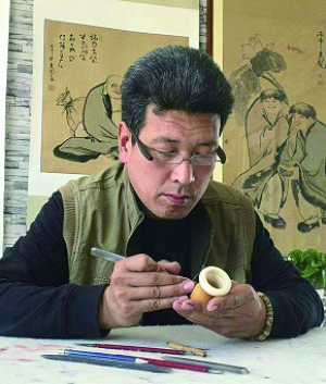 不過,想要做出一把好葫蘆,可不是那么簡單的事兒。從事砑花葫蘆三十余年的非遺傳人徐連龍說:“一把好葫蘆,至少要做一個(gè)月?!睘榱俗龀龈玫捻蓟êJ,徐連龍不但學(xué)習(xí)了國畫,還專門師從劉守本,學(xué)習(xí)內(nèi)畫鼻煙壺技藝,成功將內(nèi)畫圖案引入到葫蘆之上。