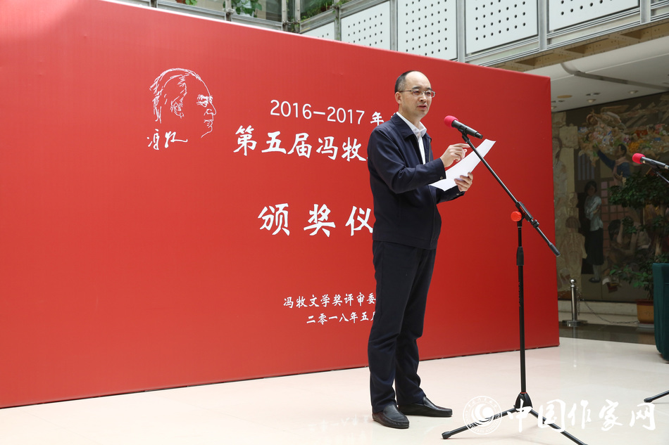 中國(guó)作協(xié)書(shū)記處書(shū)記、馮牧文學(xué)獎(jiǎng)評(píng)委會(huì)副主任吳義勤主持頒獎(jiǎng)會(huì)