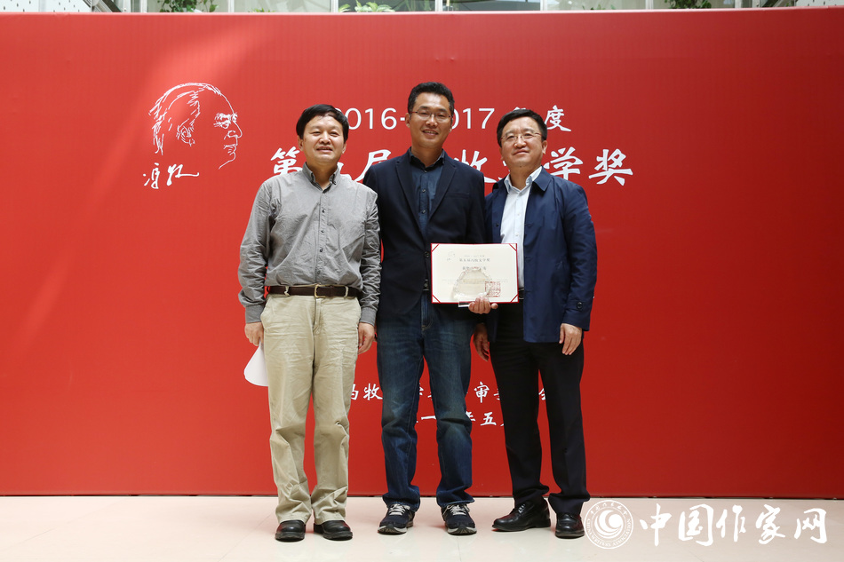 中國(guó)作協(xié)副主席高洪波為魯敏頒獎(jiǎng)