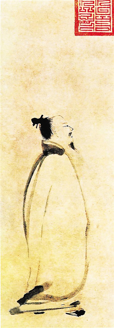 不難看出,在構思《太白行吟圖》時,梁楷對李白的外在形貌進行了盡可能簡化的處理。雖然沒有肖似的形貌再現(xiàn),但觀者同樣能對畫面中的詩人形象產生認同。究其原因,則在“傳神”??梢?,梁楷的《太白行吟圖》正是充分體現(xiàn)了中國人物畫“以形寫神”造型特征的代表之作。