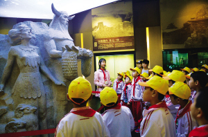 小講解員高夢(mèng)熙在北川羌族民俗博物館為東辰二小的同學(xué)們介紹羌族始祖——炎帝。 北川羌族民俗博物館供圖