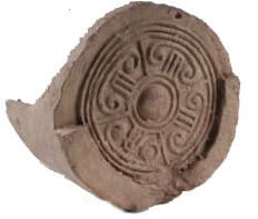 奇臺(tái)縣石城子古城遺址出土的漢代云紋瓦當(dāng)。