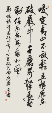當(dāng)代書法創(chuàng)作觀的發(fā)展,需要當(dāng)代書法家具有開闊的藝術(shù)視野,將書法置放在博大精深的中國文化傳統(tǒng)的大背景之下,將歷史意識、個(gè)人情感與時(shí)代審美有機(jī)結(jié)合,以個(gè)體生命的情懷感悟書法,以書法自信和文化自覺,與當(dāng)下國人的精神氣質(zhì)和當(dāng)下的現(xiàn)實(shí)生活恰切地、自然地糅合在一起。數(shù)十年的硯田辛勤耕耘,使宋華平的書法審美內(nèi)蘊(yùn)更加豐富,其行草書將晉人之韻、唐人之法、王鐸之骨盡挾筆端,以積極有為的創(chuàng)作激情投身于當(dāng)代行草書創(chuàng)作,進(jìn)而實(shí)現(xiàn)當(dāng)代書法的歷史擔(dān)當(dāng)。
