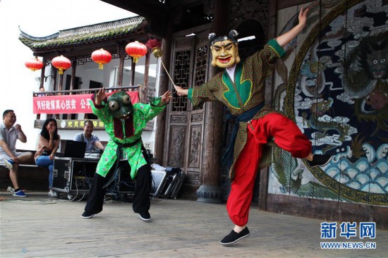 5月19日是第八個(gè)中國(guó)旅游日,江西省旅發(fā)委統(tǒng)籌了主題為“全域旅游,美好生活”的旅游活動(dòng)。婺源縣江灣景區(qū)設(shè)立的上饒分會(huì)場(chǎng)將兩大非物質(zhì)文化遺產(chǎn)徽劇和儺舞搬上了古戲臺(tái)供游人欣賞。