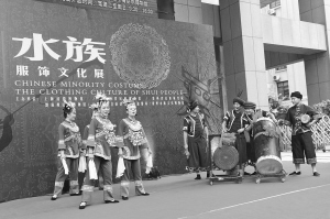 此次展覽由“水族歷史文化”“織秀云霞——水族的紡織繡染”“青藍素裝——水族便裝”“情滿衣襟——水族盛裝”“愛的紐帶——背扇·童裝”“當代華彩——當代改良水族服飾”等6個部分組成,集中展示了不同支系、不同性別、不同年齡的水族服飾。展覽還展出了與水族服飾文化相關的紡織工藝品、刺繡、銀飾等物品約180件(套),并舉行了水族服飾歌舞展演、水族繡娘現(xiàn)場表演馬尾繡技藝等活動。