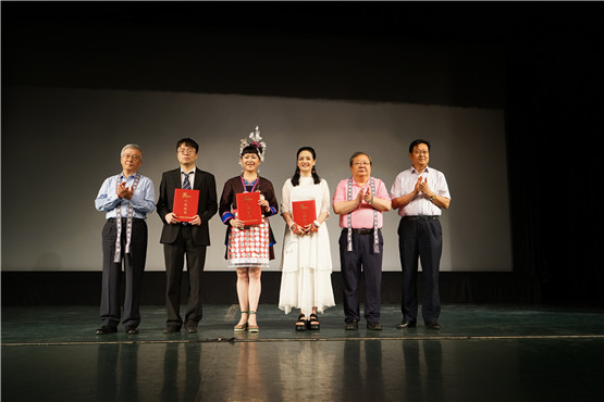 中國(guó)作協(xié)副主席、書(shū)記處書(shū)記吉狄馬加等為《侗族大歌》出品方頒發(fā)工程入選影片證書(shū) 陳澤宇 攝
