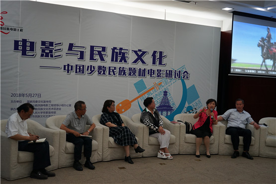 27日下午,活動(dòng)還舉辦了“電影與民族文化——中國(guó)少數(shù)民族題材電影研討會(huì)”。邀請(qǐng)民族文化、電影界的專(zhuān)家,包括編劇、導(dǎo)演、制片人、學(xué)者、演員、電影發(fā)行人等專(zhuān)業(yè)人士,與中國(guó)人民大學(xué)、中央民族大學(xué)的師生一起,以主旨演講、專(zhuān)家訪(fǎng)談、名家點(diǎn)評(píng)、專(zhuān)家與學(xué)生互動(dòng)交流等形式,就如何在新形勢(shì)下創(chuàng)作更多更好的民族題材電影、進(jìn)一步弘揚(yáng)各民族優(yōu)秀文化、擴(kuò)大民族題材電影的影響力等議題,進(jìn)行深入的交流和探討。會(huì)議由中國(guó)少數(shù)民族電影工程領(lǐng)導(dǎo)小組辦公室副主任、宣傳推廣部主任牛頌主持。