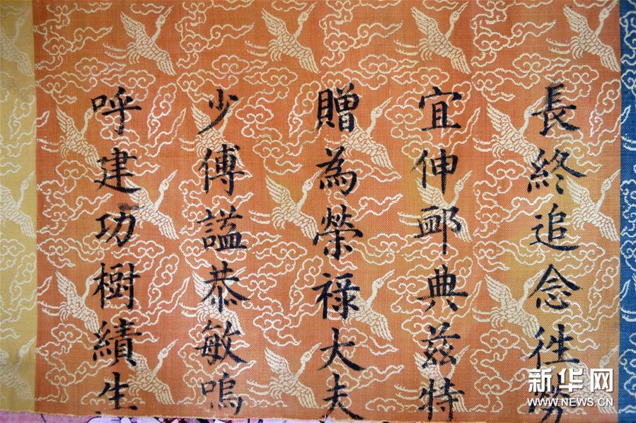 這是5月23日拍攝的在河北南宮發(fā)現(xiàn)的明成化年間七彩圣旨局部。新華社記者 朱旭東 攝