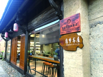 陣雨初霽的午后,記者來到大東壩鎮(zhèn)石倉村——江南客家的遷徙地,村前的石倉溪因大雨來襲而激流奔騰,沿著徐徐上傾的坡度往前走,卵石鑲嵌的村道被雨水沖刷得潔凈如洗,遇見村民他們都會友好地點頭致意,讓人有賓至如歸之感。走進裝修雅致的“鳴珂里”民宿,門上的兩塊牌子十分醒目——“非遺傳承體驗點”“圓夢書屋”。
