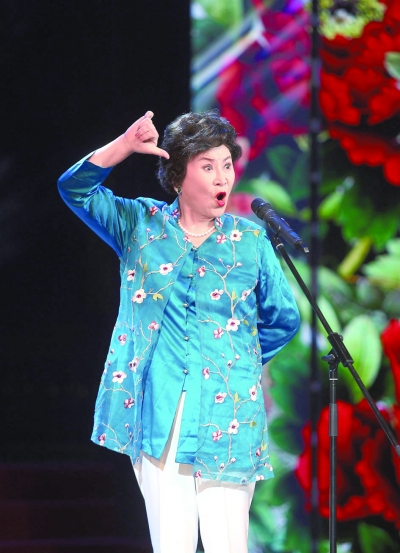北京評(píng)書國(guó)家級(jí)代表性傳承人劉蘭芳在曲藝周開(kāi)幕式上表演《康熙買馬》。