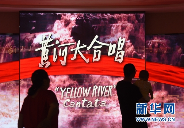 7月7日,觀眾在聆聽展覽現(xiàn)場播放的《黃河大合唱》。