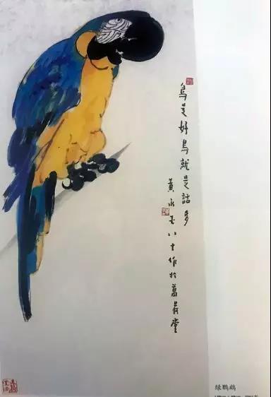 比如黃老畫過一只鸚鵡,精神的很,結(jié)果配字:鳥是好鳥,就是話多。