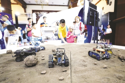 月球車模型在模擬的月球上進(jìn)行科學(xué)測(cè)試。本報(bào)記者袁婧攝