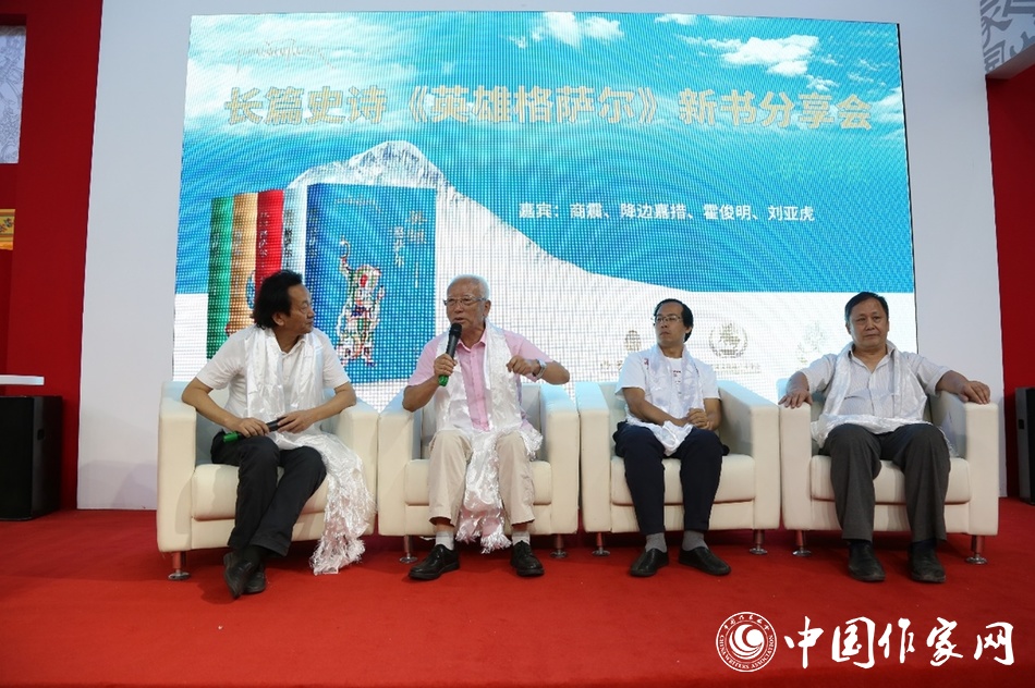 8月24號(hào)上午,由作家出版社主辦的漢文版五卷本《英雄格薩爾》新書分享會(huì)在第25屆北京圖書博覽會(huì)“中國作家館”舉行。作家出版社副總編輯、詩人商震,中國作協(xié)創(chuàng)研部研究員、詩歌評(píng)論家霍俊明,中國社會(huì)科學(xué)院民族文學(xué)研究所研究員、史詩專家劉亞虎等,參加了本次分享會(huì)。