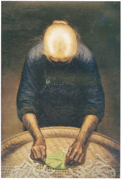 回國(guó)以后,從《故鄉(xiāng)組畫》到《重讀美術(shù)史》,在一個(gè)個(gè)系列創(chuàng)作中,我一直在反復(fù)思考自己的油畫藝術(shù)的文化身份,努力推進(jìn)油畫本土化的進(jìn)程,表達(dá)根植于中國(guó)文化的審美。在《重讀美術(shù)史》這組作品中,我用自己的繪畫語(yǔ)言,重新詮釋中西方美術(shù)史上的名作,并以此來(lái)進(jìn)一步闡述對(duì)中國(guó)當(dāng)代美術(shù)發(fā)展方向的思考,即當(dāng)中國(guó)油畫受到西方藝術(shù)啟蒙并完成學(xué)習(xí)、模仿階段之后,應(yīng)如何立足于本民族文化傳統(tǒng),回歸到熟悉的題材,重構(gòu)精神原鄉(xiāng),探求中國(guó)繪畫的當(dāng)代面貌。簡(jiǎn)而言之,就是實(shí)現(xiàn)藝術(shù)創(chuàng)作的“中國(guó)精神”和“當(dāng)代語(yǔ)言”,而不僅僅是在西方當(dāng)代藝術(shù)的內(nèi)核上披件中式外衣。在創(chuàng)作中,我融入了許多從民間汲取的創(chuàng)作元素,比如剪紙、蠟染、木刻等。通過(guò)這些民間藝術(shù)和原始造型藝術(shù),我找到了重讀歷史的語(yǔ)言,也認(rèn)識(shí)到只有真正構(gòu)建起具有中國(guó)精神、中國(guó)氣派的當(dāng)代繪畫系統(tǒng),在與西方交流合作時(shí),才能擁有平等的一席之地。