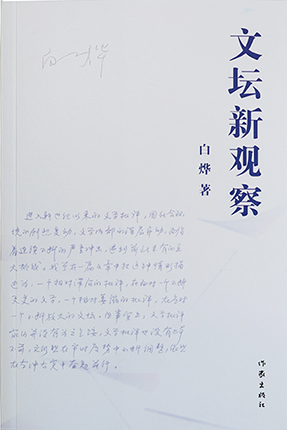 白燁的《文壇新觀察》,深入學(xué)習(xí)領(lǐng)會習(xí)近平總書記關(guān)于文藝工作的重要論述,自覺運(yùn)用于文學(xué)現(xiàn)場的觀察和分析。視野寬博,持論懇切,體現(xiàn)著對當(dāng)代文學(xué)健康發(fā)展堅持不懈的責(zé)任擔(dān)當(dāng)。