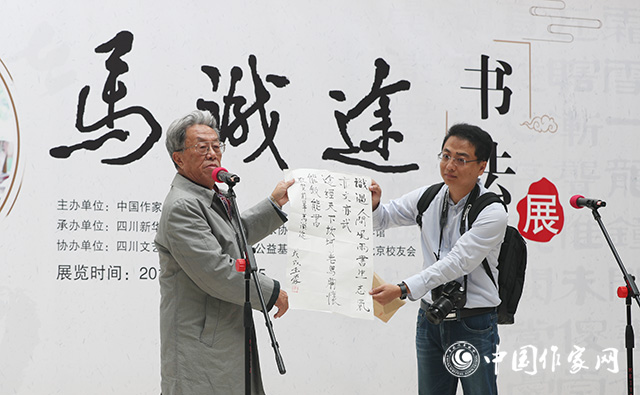 中科院院士、西南聯(lián)大北京校友會會長潘際鑾,四川新華發(fā)行集團(tuán)副總裁柯繼銘也在致辭中表達(dá)了對馬識途先生的敬重和欽佩之情,盛贊馬識途先生的為人、為文和書法造詣。