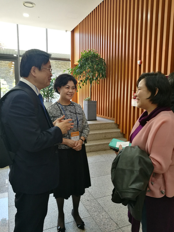 論壇休息時(shí),鐵凝與韓國(guó)漢學(xué)家樸宰雨等交流