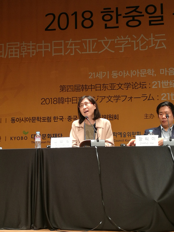 韓國(guó)作家陳恩英在論壇上發(fā)言
