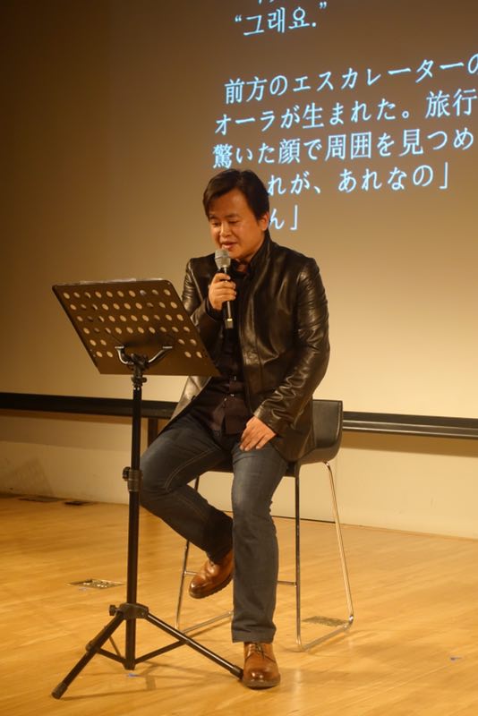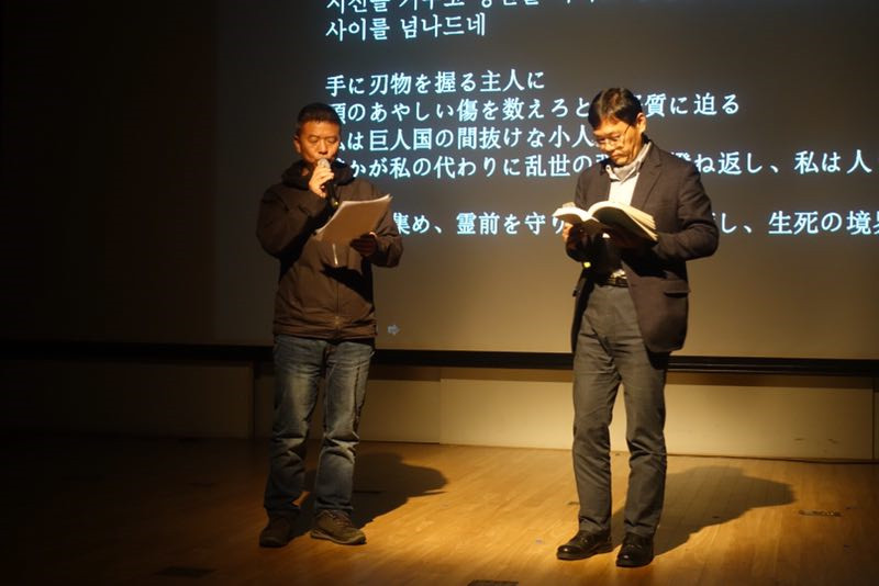 雷平陽(yáng)和韓國(guó)詩(shī)人郭孝桓在“文學(xué)之夜”活動(dòng)上一起朗誦