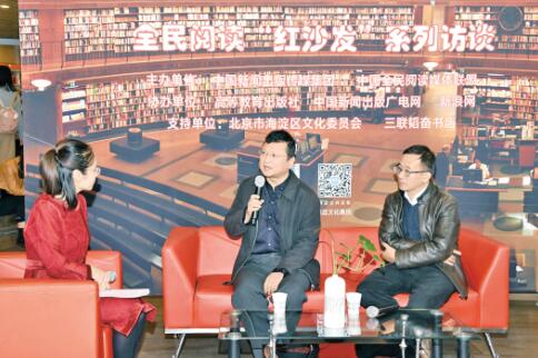 10月13日下午,在北京市海淀區(qū)文化委員會(huì)的支持下,由中國(guó)新聞出版?zhèn)髅郊瘓F(tuán)、中國(guó)全民閱讀媒體聯(lián)盟主辦的“書香校園·閱讀海淀”——全民閱讀“紅沙發(fā)”系列訪談活動(dòng)在三聯(lián)韜奮書店海淀分店舉行。韜奮基金會(huì)理事長(zhǎng)聶震寧、清華大學(xué)附屬中學(xué)副校長(zhǎng)孟衛(wèi)東、首都師范大學(xué)閱讀研究專家王蕾、“一起悅讀”俱樂(lè)部創(chuàng)始人石恢和第二書房連鎖社區(qū)圖書館創(chuàng)始人李巖熱情參與訪談,與讀者分享參與推動(dòng)全民閱讀活動(dòng)的感受和體會(huì)、讀書會(huì)和社區(qū)閱讀推廣的經(jīng)驗(yàn),深入探討了校園閱讀對(duì)青少年的重要影響、閱讀推廣人隊(duì)伍建設(shè)以及閱讀習(xí)慣培養(yǎng)等熱門話題。