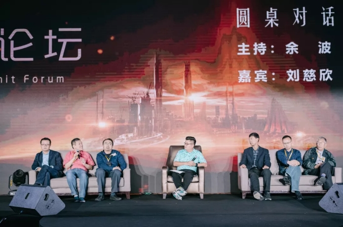 圖16:余波主持圓桌對話,嘉賓劉慈欣、吳巖、何夕、姚海軍、江波、王晉康