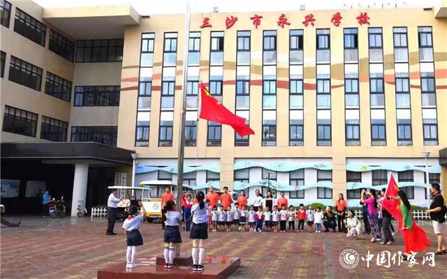 采訪團第一站來到三沙市永興學校,當時正是早上8點鐘,學校的孩子們正在樓前的空地舉行升旗儀式,采訪團的團員們也加入了升旗的隊伍,向著國旗行注目禮。隨后,采訪團成員參觀了學校的教學場所和辦學展覽,觀看了學生制作的各種手工作品。永興學校是中國最南端的學校,于2015年投入使用,目前學校有27名學生,都是漁民和守島軍人的子弟,畢業(yè)于瓊臺師范學院的10名教師在此執(zhí)教。作家們與老師和學生交談中,感受到了永興學校的不一樣的情懷。作家王松告訴記者,“看到那個升旗手踮著腳尖小心翼翼地把國旗的繩子拴好……我不禁流淚了,到這里的每一刻,都能強烈地感覺到‘愛國’這兩個字?!?/p>