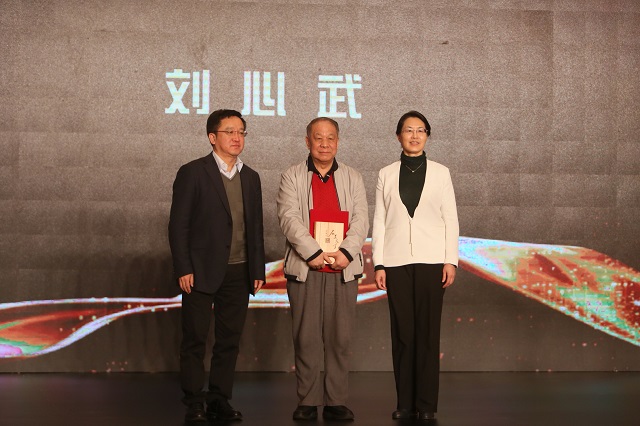 閻晶明、陳紅英為劉心武先生頒獎