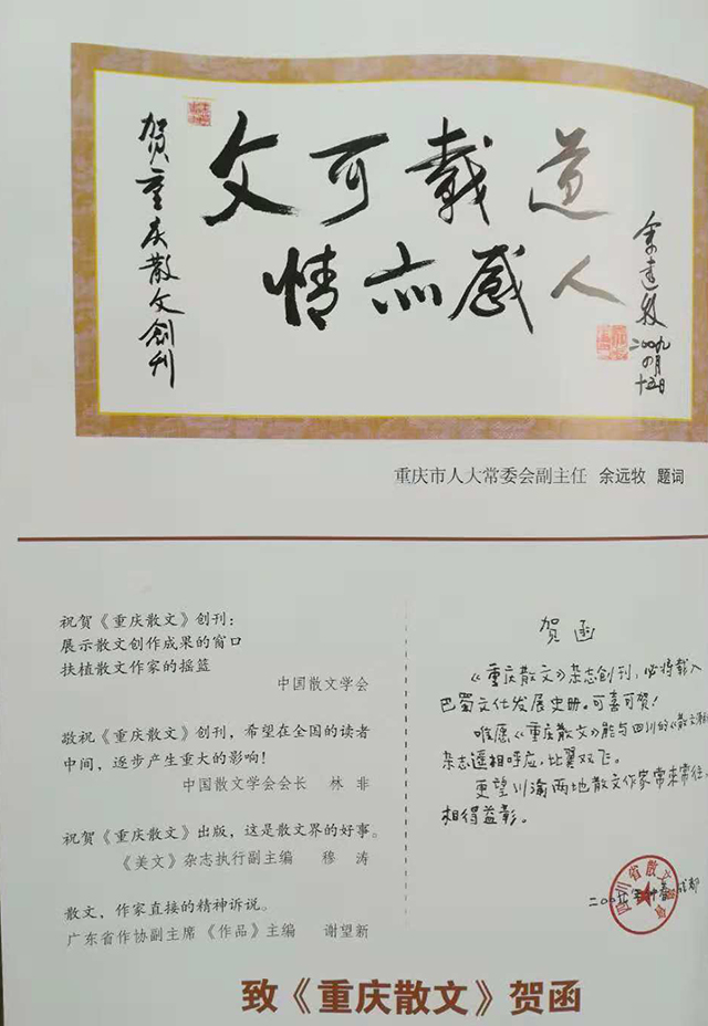 2017年,《重慶散文》還與涪陵區(qū)馬武鎮(zhèn)黨委政府聯(lián)合舉辦了“首屆‘古今.悅溪’杯”征文比賽,評選出一、二、三等獎和優(yōu)秀獎共10名。