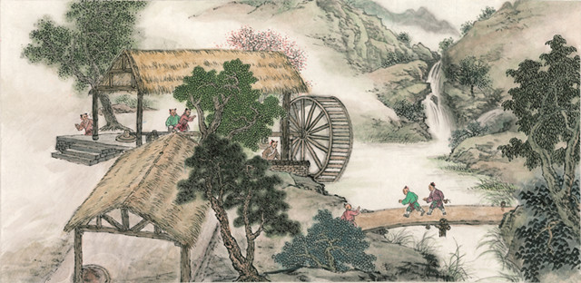 繪畫的表現(xiàn)是繪本極其重要的一面。這套繪本采用水墨畫的形式,將傳統(tǒng)工匠的故事娓娓道來(lái),從內(nèi)容到形式,達(dá)到了完美的統(tǒng)一?!洞伞贰都垺贰恫琛酚墒⒃焕舷壬L制。盛老先生是著名的中國(guó)畫、插畫、連環(huán)畫家。老先生以繪畫為樂,雖經(jīng)古稀之年,仍然精神健朗,且筆墨不輟。老先生不幕名利,爽快地答應(yīng)為這套兒童繪本創(chuàng)作插畫,意在為孩子做一點(diǎn)有意義的事??催@三本繪本的創(chuàng)作,老練持重的筆墨揮灑自如,水墨氤氳間可見宋人山水、生活場(chǎng)景的描繪揮一氣呵成。設(shè)色清新拙樸,濃淡相宜?!渡取酚汕嗄昱嫾覅钦渲縿?chuàng)作。這是她第一次創(chuàng)作兒童繪本,因?yàn)橄矚g這個(gè)題材,所以欣然接受了繪本的創(chuàng)作。她的的筆墨新穎活潑而又酣暢淋漓、揮灑自如。擅變的水墨流轉(zhuǎn)中,時(shí)而淡雅,時(shí)而濃郁的色彩如流光溢彩般閃爍。兩位畫家的繪畫起于心,重于情,得乎趣,單純而又真摯,達(dá)到了中國(guó)畫意境、氣韻、格調(diào)的境界,賦予平凡的工匠故事以藝術(shù)的審美價(jià)值。