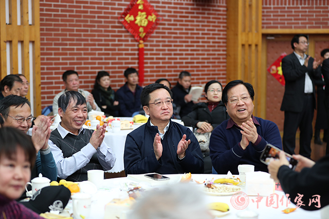 在喜慶歡快的樂曲聲中,與會(huì)作家們親切握手,熱情交談,合影留念,互致新春祝福,回顧過去一年文學(xué)事業(yè)繁榮發(fā)展取得的成就,展望新一年中國文學(xué)的美好未來。部分中國作協(xié)會(huì)員、青年干部職工和藝術(shù)家們表演了精彩的文藝節(jié)目。