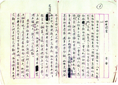 老舍長篇小說《四世同堂》手稿 本文圖片均選自《老舍評傳》
