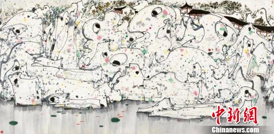 展覽中最引人注目的當(dāng)屬吳冠中創(chuàng)作于1988年的《獅子林》。該作品是吳冠中最為重要的藝術(shù)作品之一。該畫所表現(xiàn)的蘇州獅子林和吳冠中一個重要理論觀點有關(guān),即“風(fēng)箏不斷線”的理論。他認(rèn)為,繪畫抽象就像是放風(fēng)箏,風(fēng)箏是作品,是“從生活中來的素材和感受,被作者用減法、除法或別的法”,抽象成的某一種藝術(shù)形式,而觀眾是天空,要讓風(fēng)箏飛上天空,藝術(shù)家手中“須有一線聯(lián)系著作品與生活中的源頭”。