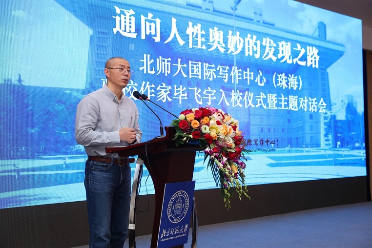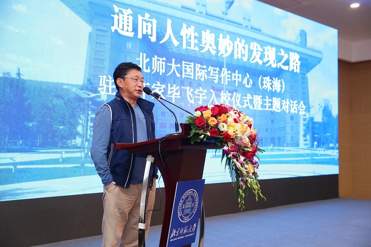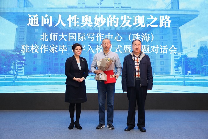 4月14日上午,“通向人性奧妙的發(fā)現(xiàn)之路:北師大國際寫作中心(珠海)駐校作家畢飛宇入校儀式暨主題對話會”在北師大珠海校區(qū)舉行。自2013年北師大寫作中心引入駐校作家制度以來,先后邀請了賈平凹、余華、嚴(yán)歌苓、歐陽江河、蘇童、西川、遲子建、翟永明、格非、韓少功等10位駐校作家,推動了文學(xué)教育事業(yè)的蓬勃開展。今年,知名作家畢飛宇也加入到駐校作家的行列,在入校儀式上,北師大國際寫作中心主任莫言、珠海分校副校長傅愛蘭為畢飛宇頒發(fā)聘書,儀式由北京師范大學(xué)國際寫作中心執(zhí)行主任張清華主持。