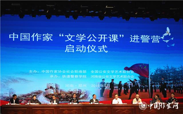 5月9日,由中國作家協(xié)會(huì)社聯(lián)部組織的中國作家“文學(xué)公開課”系列文學(xué)公共服務(wù)活動(dòng)在鄭州啟動(dòng)。首場“文學(xué)公開課”由中國作協(xié)社聯(lián)部與全國公安文聯(lián)共同主辦,知名作家劉醒龍、劉慶邦走進(jìn)鐵道警察學(xué)院與河南警察學(xué)院,為來自全國26所警察院校的青年學(xué)子和公安作家授課,講述文學(xué)人生,分享創(chuàng)作經(jīng)驗(yàn)。全國公安文聯(lián)主席王儉,中國作協(xié)社會(huì)聯(lián)絡(luò)部主任李霄明,全國公安文聯(lián)副主席張策,鐵道警察學(xué)院黨委書記陳東升、院長管曙光,河南省公安廳政治部副主任仝功俊出席了在鐵道警察學(xué)院舉行的啟動(dòng)儀式。啟動(dòng)儀式由中國作協(xié)社會(huì)聯(lián)絡(luò)部副主任馮秋子主持。全國公安文聯(lián)有關(guān)職能部門的同志、全國各公安院校師生代表、公安作家,以及鐵道警察學(xué)院師生代表共一千余人參加了啟動(dòng)儀式。