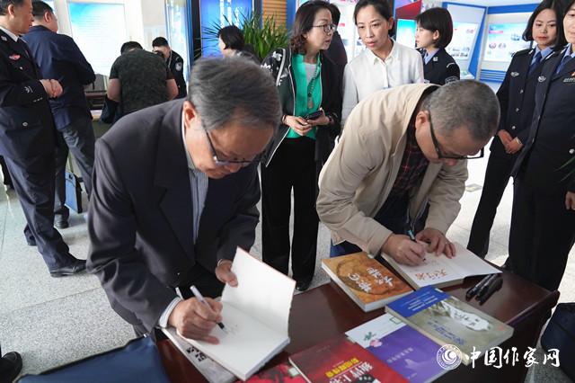劉醒龍、劉慶邦在鐵道警察學(xué)院館藏書籍上簽名
