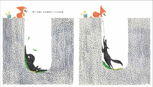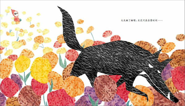 澎湃新聞:王曉明老師給《小紅帽》寫的導讀里提到,在這本書的封底,我們以為已經被小紅帽感化的大灰狼,決絕地丟棄了小紅帽給它包扎傷口的衣角,他認為這體現(xiàn)了圖文之間“一個故事各自表述”的意圖,對此,能不能談談你自己的看法?