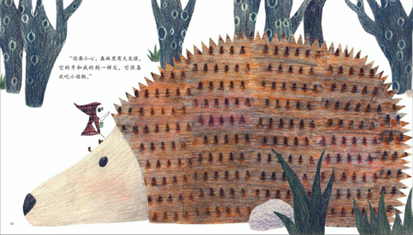 澎湃新聞:你的圖畫書創(chuàng)作可以說起點很高,《走出森林的小紅帽》拿了很多獎,最初怎么會想到要改編這個經典童話故事的呢?我們知道,這些年對于這些經典童話在各種藝術形式中的顛覆性改編都很多,其中有沒有對你產生過影響或啟發(fā)的?為什么會想到把小紅帽變成盲人呢?