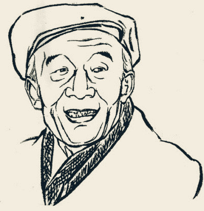 1957年在中國(guó)作協(xié)院內(nèi)老舍(中)與趙樹(shù)理(左)、楊朔合影