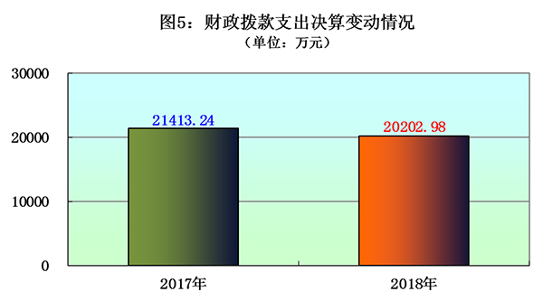 2018年度財政撥款支出20202.98萬元, 占本年支出合計的73.47%。與2017年相比,財政撥款支出減少1210.26萬元,下降5.65%。