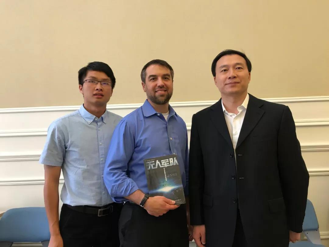 2019年6月25日在北京開(kāi)會(huì)相聚的《無(wú)人軍隊(duì)》 譯者朱啟超、作者保羅·沙瑞爾、譯者龍坤(從右至左)