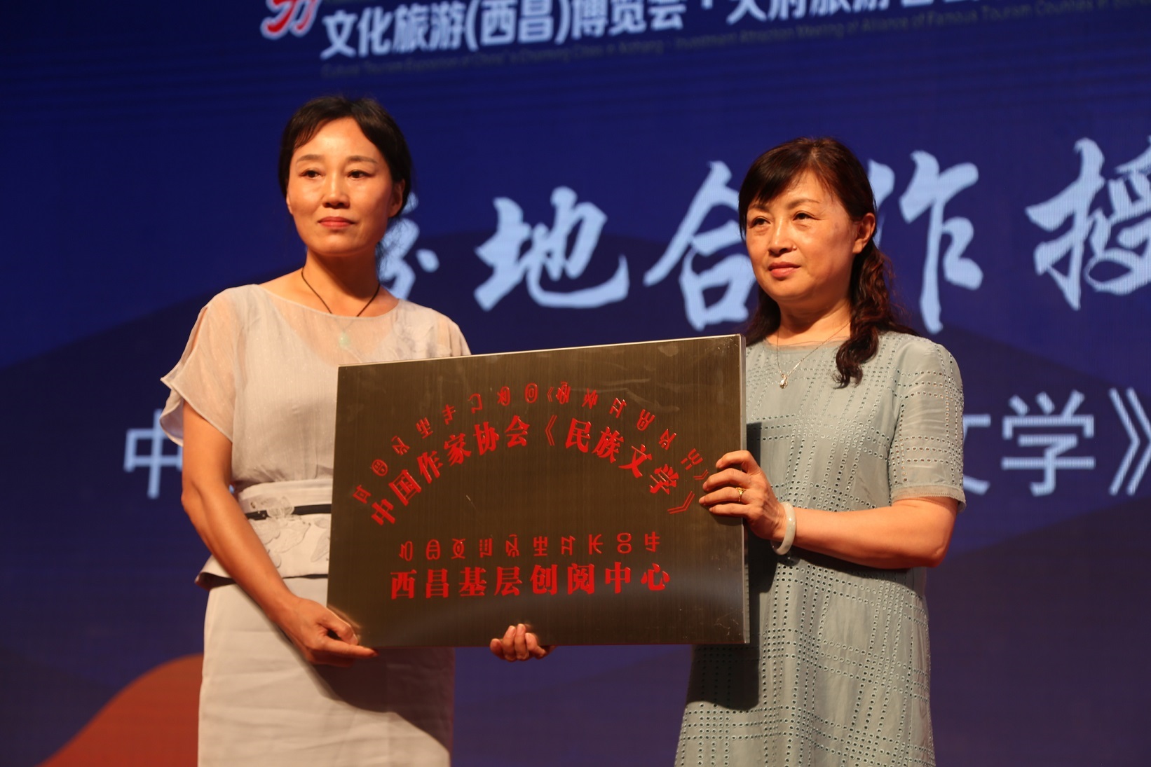 《民族文學(xué)》主編石一寧為《民族文學(xué)》西昌創(chuàng)意寫作中心授牌